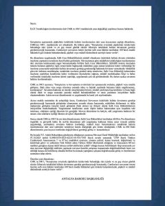 Baro, müdafilerin de tutukluluk incelemelerinde dinlenmesini zorunlu kılacak yasal düzenleme yapılması talebiyle hazırladığı yazıyı Adalet Bakanlığı’na, Türkiye Barolar Birliği’ne ve Antalya milletvekillerine gönderdi.