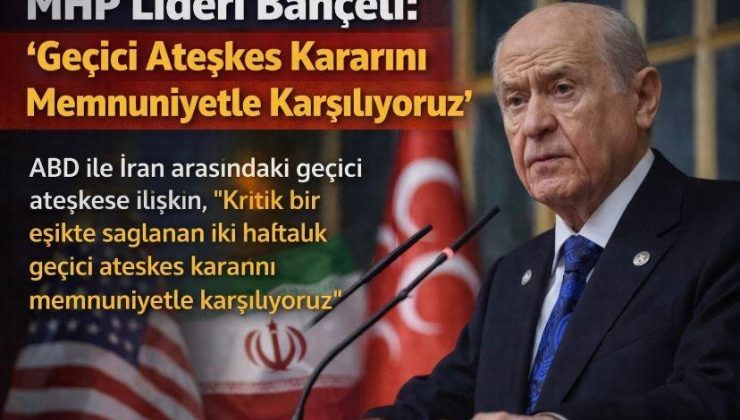 Milliyetçi Hareket Partisi (MHP) Genel Başkanı Devlet Bahçeli, ABD ile İran arasında sağlanan ve İsrail’i de kapsayan geçici ateşkese ilişkin değerlendirmelerde bulundu. Bahçeli, söz konusu gelişmenin hem bölgesel hem de küresel barış açısından önemli bir adım olduğunu vurguladı.