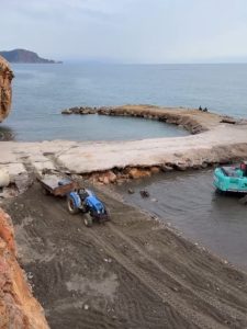 Görüntülerde bir otelin önünde denize doğru taş ve toprak dökülerek alan oluşturulduğu görülürken, bu durum vatandaşların tepkisine neden oldu. Bölgedeki vatandaşlar, “Deniz herkesin, kimse kendi mülkü gibi kullanamaz” diyerek duruma tepki gösterdi.